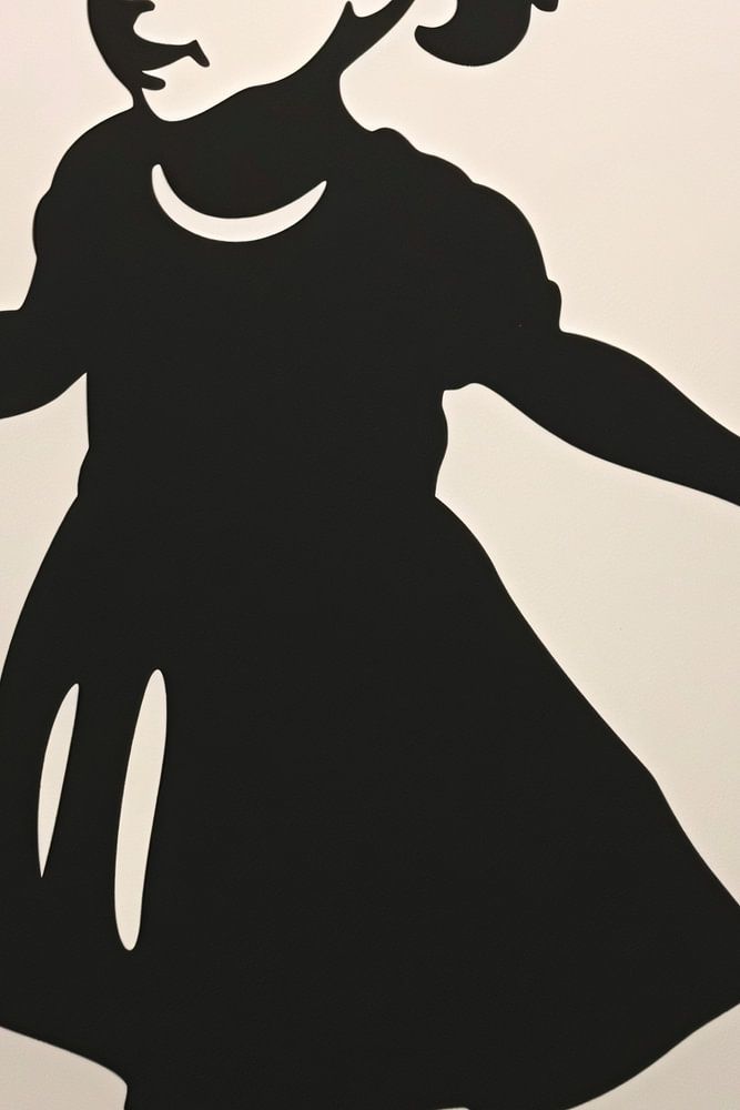 This charming silhouette portrait of a young girl dressed in a simple dress exudes youthful energy and movement. The stylised, monochrome design gives the piece a Modern, streamlined look, making it perfect for both traditional and contemporary interiors. Its simplicity makes it a versatile piece that feels at home in any room, from a vibrant nursery to a stylish living room.