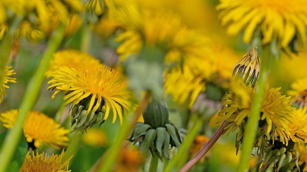Buy this flower art Dandelions in bloom in spring by Michael Schuppich on canvas, ArtFrame, poster and wallpaper, printed on demand in high quality.