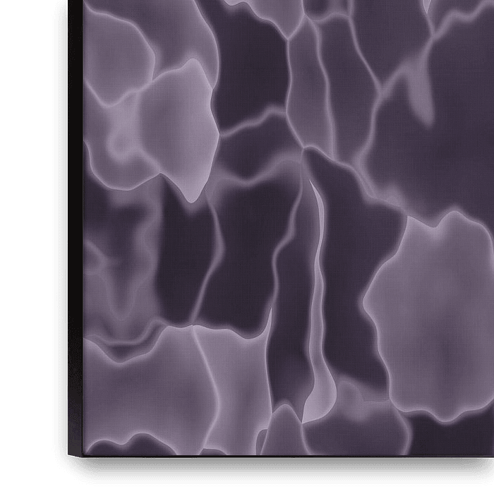 Where mathematics meets art — a portrait work: Deep, moody cellular abstraction with indigo-grey tones and softly glowing cell boundaries. The palette of dark purple, intense indigo, deep velvet lends the work a velvet darkness, with smooth tonal transitions that reward close viewing. Computational art at its finest: precision…
