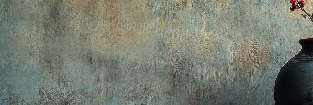 Minimalist but powerful. This panoramic photo shows a dark earthenware vase with a single branch full of pink blossoms. The matte blue wall in the background adds contrast and depth, while the weathered texture evokes a tactile atmosphere. A perfect choice for lovers of understated elegance. This piece looks great above a wooden sideboard or against a quiet wall. The balance of colour, material and emptiness makes this an ideal piece for Japandi inspiration.