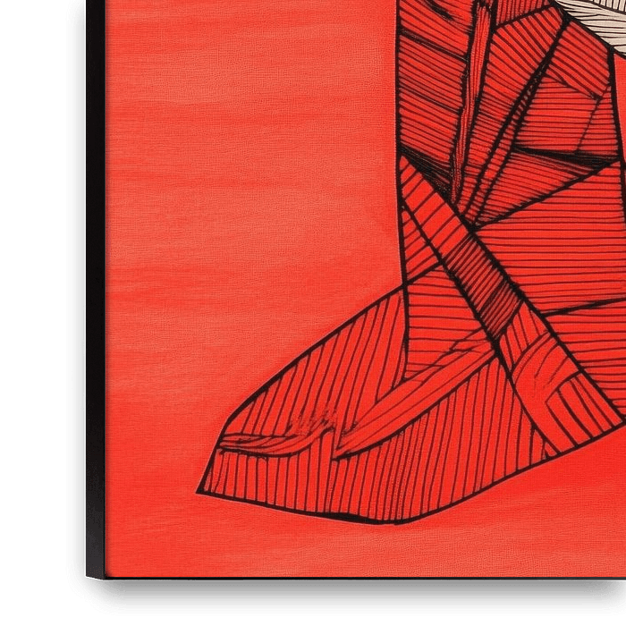 This colourful and modern artwork is characterised by expressive shapes and bold colour contrasts and line compositions. It depicts An image of a stately dachshund. With a palette of bright shades of red, it brings energy and visual appeal to any space. Its clean lines and minimalist shapes give it a contemporary look that fits well in…