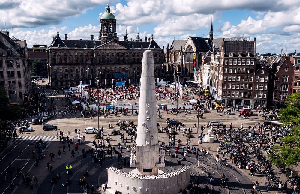 De Dam in Amsterdam, gefotografeerd vanaf het dak van het Krasnapolsky Hotel.