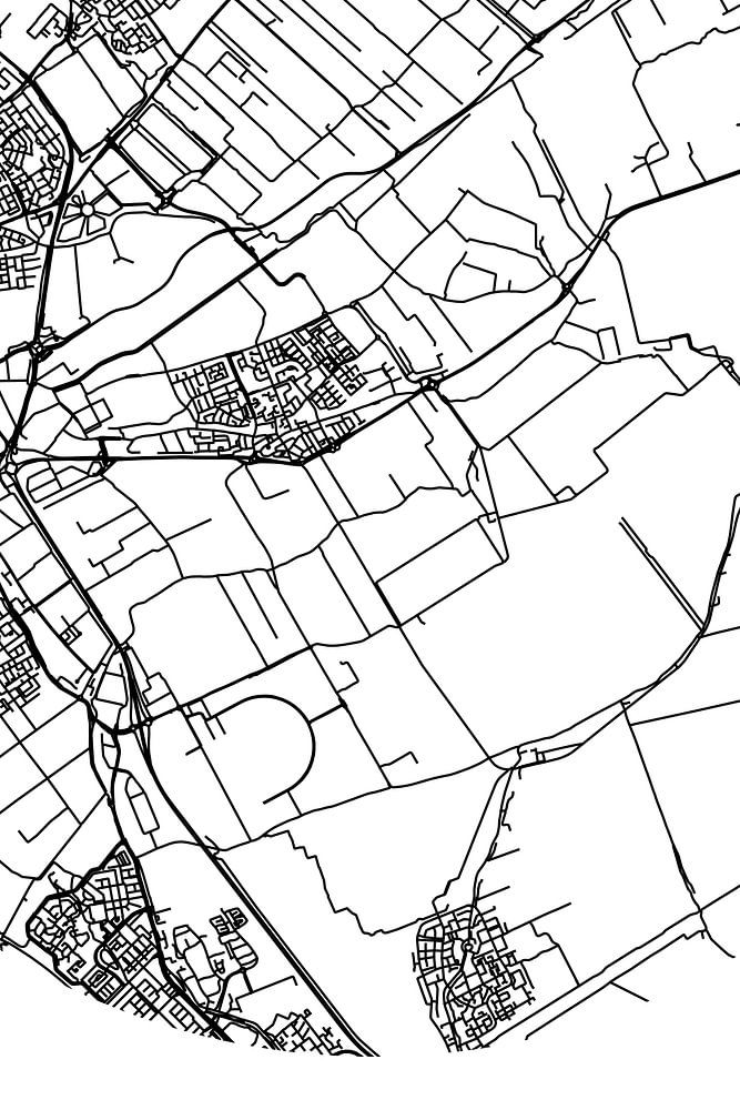 Black and white map, street map or street plan of De Lier. De Lier is located in the municipality of Westland, province of South Holland. The city map includes all public roads in De Lier. Furthermore, the map features the coordinates of the center of De Lier.
