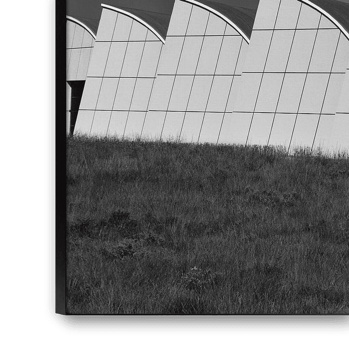 The factory building is characterized by its eight characteristic curved shovels: four longer and four shorter sheds.