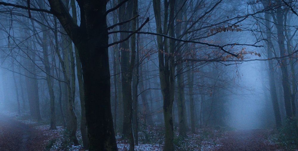 Tweesplitsing in het Vijlenerbos bij Vaals. Welke weg is de juiste...?