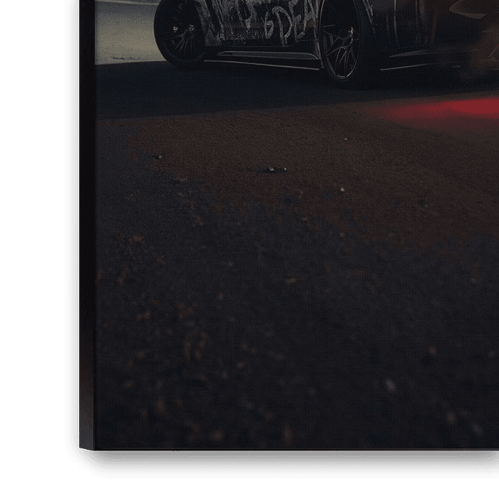 "Dead Man Walking": This custom graffiti-wrapped BMW M4 coupé tears up a desolate desert highway as the sun dips below the rugged mountains.