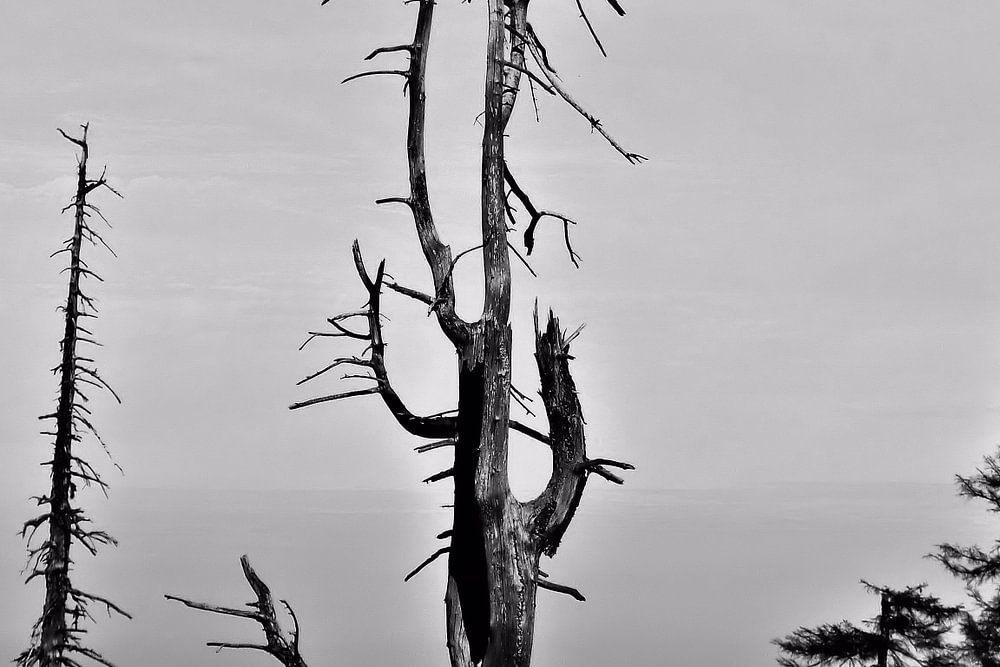 Dead trees in a forest at the foot of the Brocken by Heiko Kueverling
