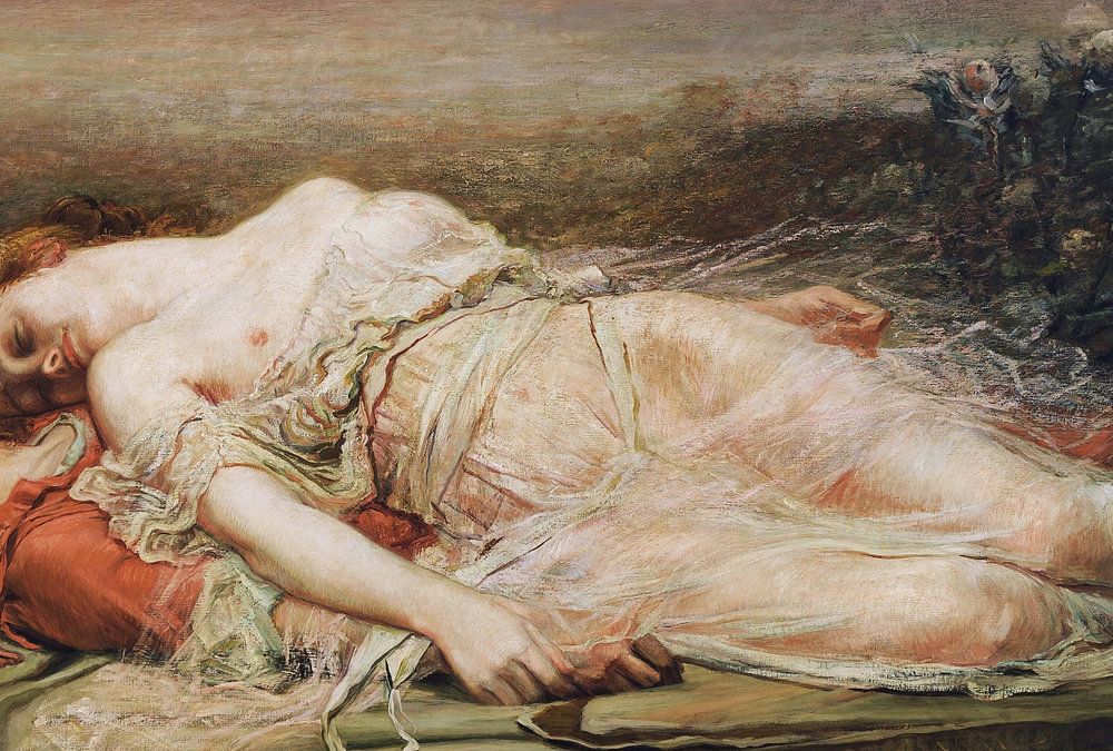 Here the man and the woman are caught while the lovers are lying in the garden. The woman is wearing a sexy transparent sheer dress where her breasts are visible because she is lying topless.