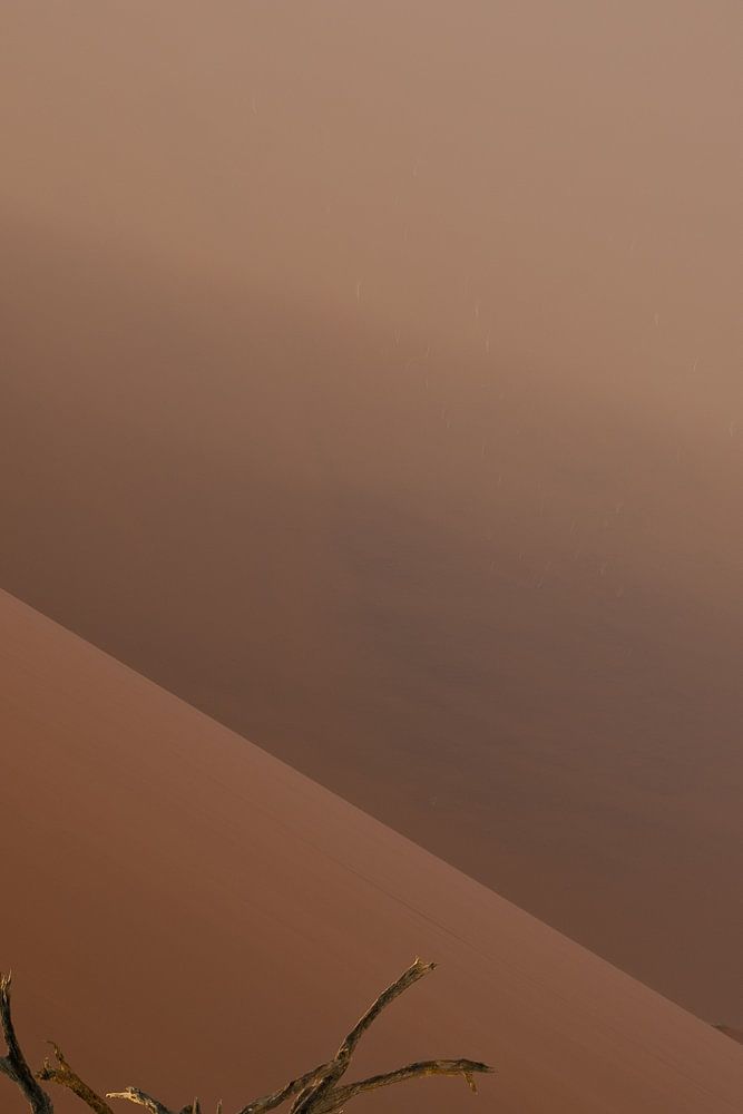 Minimalist picture of the Dodenvlei in Namibia. Chosen for this picture because of the lines. In front of the trees, followed by the bottom of one of the first sand dunes and behind it a very large sand dune on which the first sunlight of the day falls. This creates several layers in the picture.