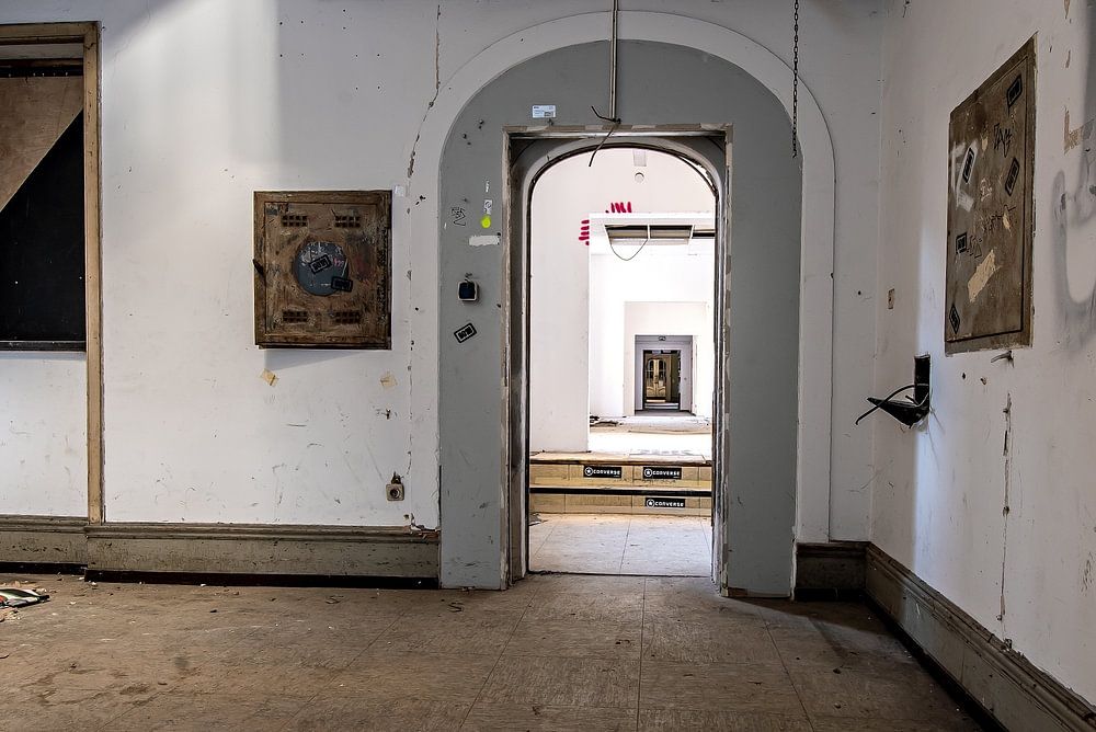 After the annexation of the Free City of Frankfurt by the Kingdom of Prussia in 1866, the medieval Clesernhof, a complex of buildings at the Römer that no longer exists, served as the first police headquarters. In 1886, a new police headquarters was built on the former Klapperfeld on the Neue Zeil, whose police custody was in operation until 2002. Due to the increasing lack of space on the Zeil, the "New Royal Police Headquarters at the Hohenzollernhof" was moved to the former Hohenzollernplatz (today's Friedrich-Ebert-Anlage) in 1914. It was built in historicist style in a mixture of neo-baroque and neo-classicism. The old police headquarters on Friedrich-Ebert-Anlage in Frankfurt has been empty for 20 years. After the police moved to the north of the city, the building was used for parties, exhibitions and various projects for years. When this too came to an end, nature reclaimed the interior of the former police headquarters more and more - and since then has been attracting "urban explorers" to the walls.