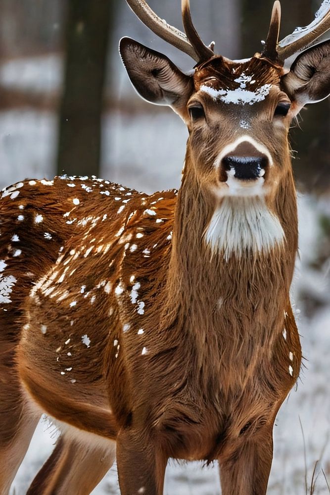 This beautiful design shows a majestic deer standing quietly in a snowy forest. The animal's details are realistically captured, making it seem as if you are stepping right into nature. Standing in the centre of the image, the deer exudes strength and calm, while the snowflakes on its fur add a magical atmosphere. This sculpture evokes a sense of serenity and admiration for nature. Ideal for lovers of wildlife and winter landscapes. This design would look great in any room, especially in an office or living room where the beauty of nature can inspire you.