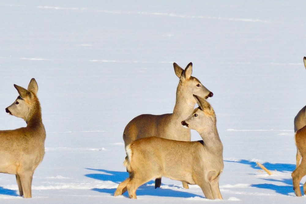 Buy the photo Deer in winter on a field by Karin Jähne on canvas, ArtFrame, poster and wallpaper, printed on demand in high quality.