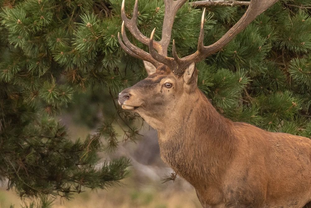 Deer on the Hoge Veluwe in the rutting season. From about the second week of September is the rutting season of red deer. The males then bellow at the top of their lungs to impress their ladies, but also their rivals. The males then bellow to impress their females, but also rival males, who are challenged to fight for the right to mate with the females. The belling takes place in the morning and evening twilight and can be heard from far away.