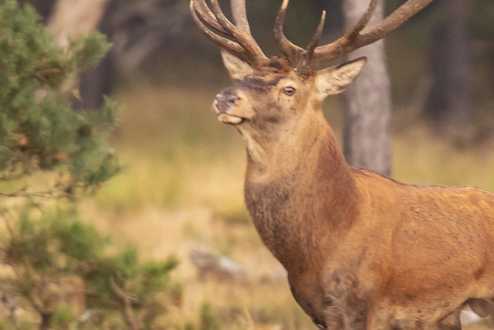 Deer on the Hoge Veluwe in the rutting season. From about the second week of September is the rutting season of red deer. The males then bellow at the top of their lungs to impress their ladies, but also their rivals. The males then bellow to impress their females, but also rival males, who are challenged to fight for the right to mate with the females. The belling takes place in the morning and evening twilight and can be heard from far away.