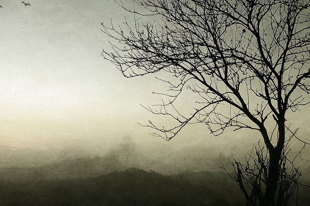 Buy this landscape artwork Deer with tree on the Veluwe by Wim Schuurmans on canvas, ArtFrame, poster and wallpaper, printed on demand in high quality.
