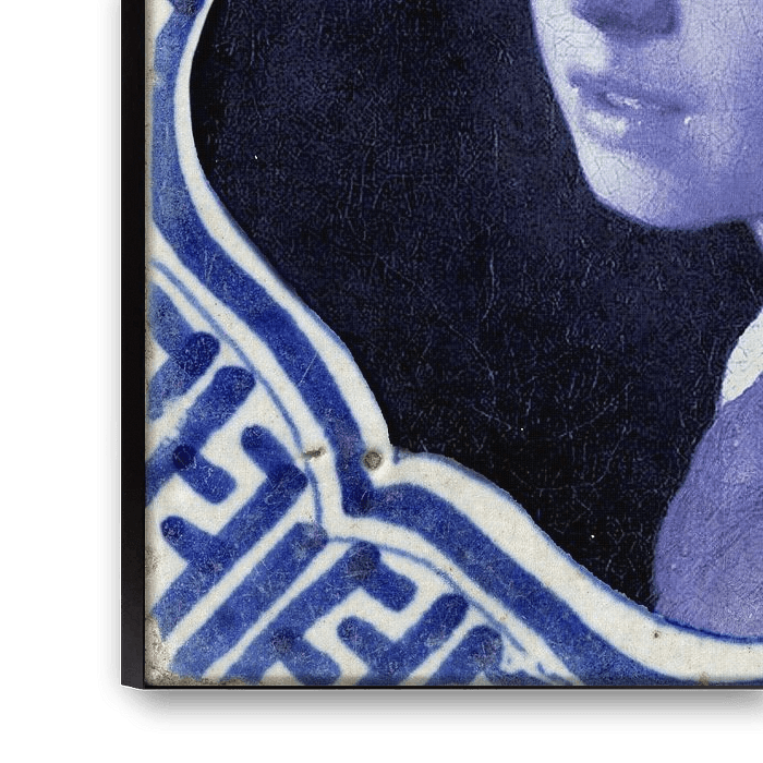 Buy this digital art artwork Delft blue tile Girl with a Pearl Earring by Fine Art Flower - Artist Sander van Laar as a reproduction on canvas, ArtFrame, poster and wallpaper, printed on demand in high quality.