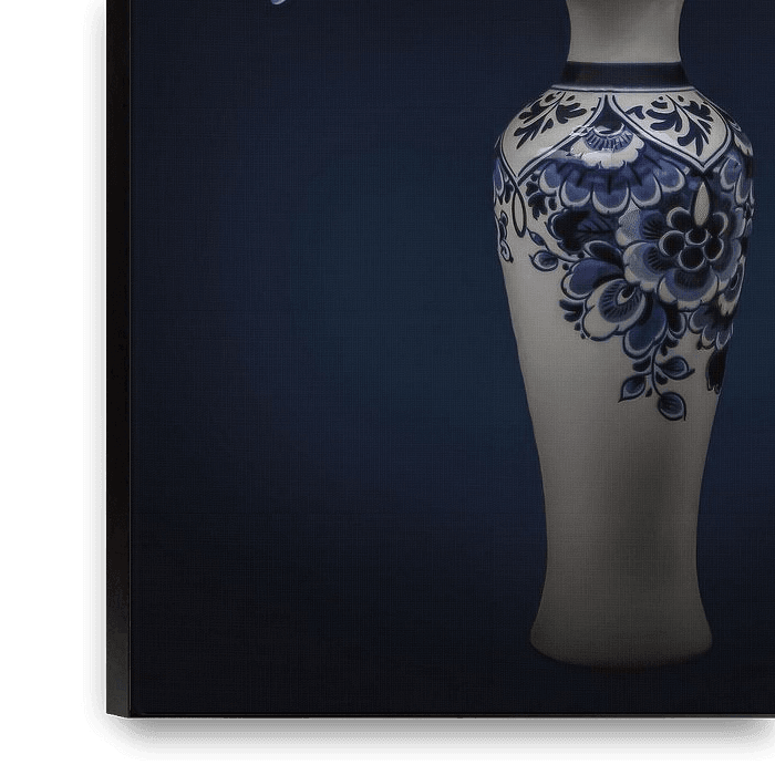 Buy this flower art Delft blue vase with hydrangea and titmouse by By Marjolein Design on canvas, ArtFrame, poster and wallpaper, printed on demand in high quality.