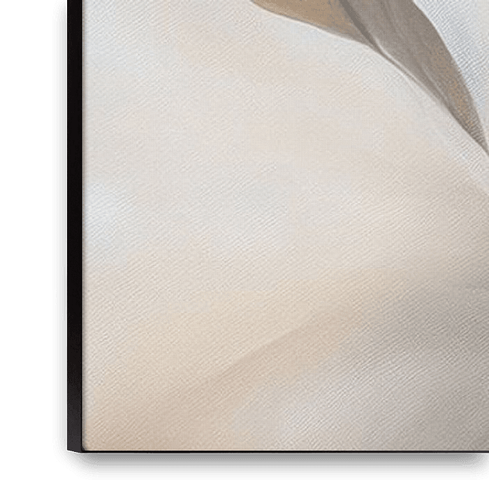 Gentle, almost ethereal waves in soft cream tones unfold, while delicate, shimmering petals nestle into each other. The harmony of the colours conveys a feeling of lightness and elegance, while darker shadows in the depths create a fascinating contrast. A dance of textures that beguiles the senses and invites contemplation.