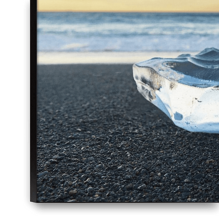 Buy this landscape artwork Delicate piece of ice washed up on the ash beach at Jokulsarlon in Iceland by Sjoerd van der Wal Photography on canvas, ArtFrame, poster and wallpaper, printed on demand in high quality.
