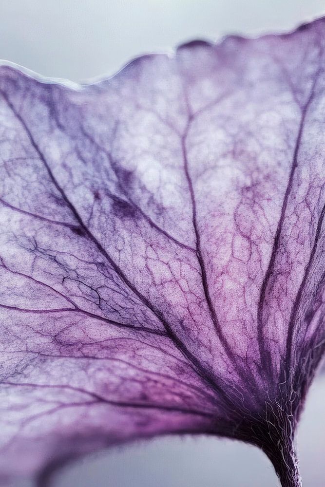 A delicate leaf in soft shades of violet and purple conveys a calm, almost dreamy atmosphere. The delicate structure and symmetrical shape draw the eye and invite contemplation. Ideal for the bedroom or a meditation room, this work of art provides relaxing accents and a harmonious ambience.