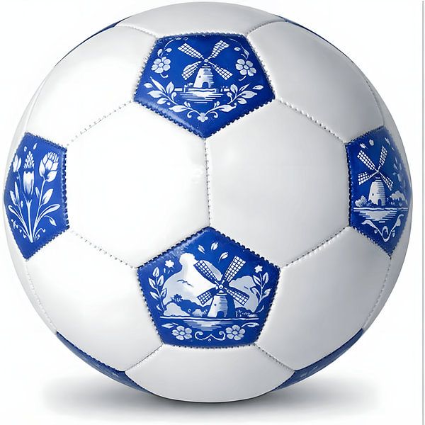Cobalt Kick is a delft blue inspired artwork in which a classic football is enriched with blue and white Delftware panels. Windmills, tulips and ornate ornaments form a porcelain-like print that brings together sport and Dutch heritage. The sharp contrasts of cobalt blue and white give the object a fresh, graphic look, perfect for…
