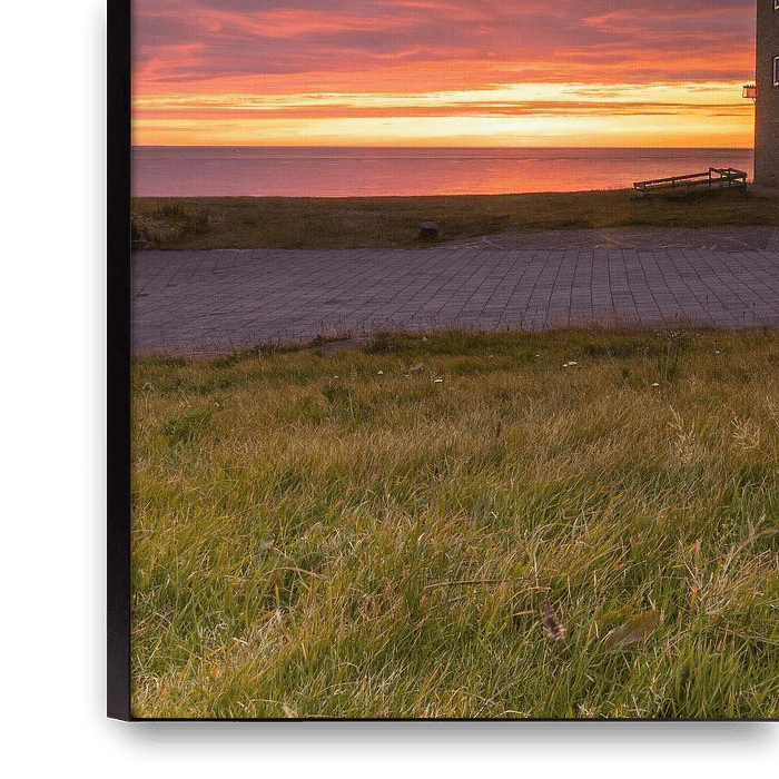 The Turret in Huisduinen, Den Helder. Formerly a coastguard tower, it can now be rented as a holiday home. The setting sun just peeks out from under the cloud cover, illuminating the damp clouds from below. Resulting in a true colour spectacle.