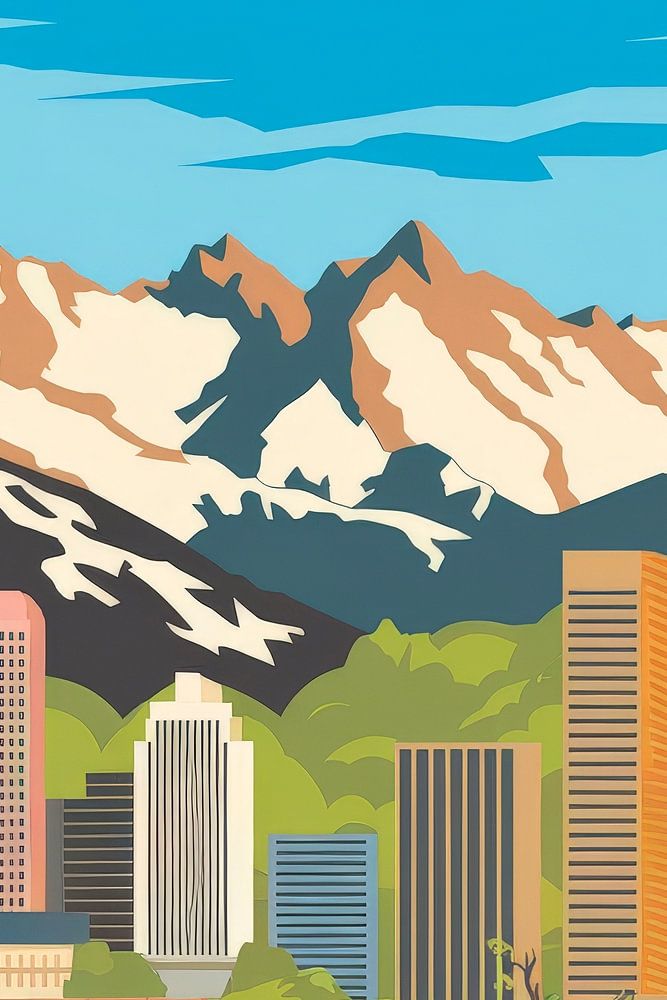 A clear sky over the majestic Rockies, urban charm and the vibrant life of Denver come together in this work of art. The harmonious colour combination and stylised depiction of the skyline invite you to relax. Perfect for the living room, it brings concentrated energy and inspiration into your room.