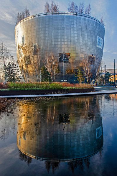 A special winter photo of the Depot of the Boymans van Beuningen Museum in the Museumpark in Rotterdam. The usually reflective Pot is covered with frost/dew/moisture and therefore reflects a little less this morning. But the building is beautifully reflected in the ice on the pond at the Nieuwe Instituut. The scene is beautifully lit by…