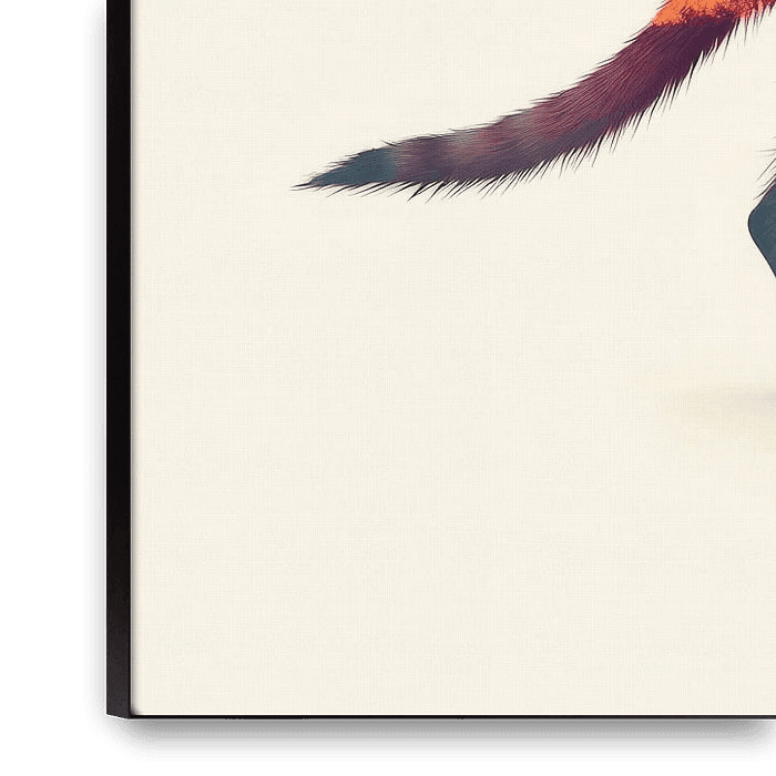 A fascinating interplay of colours and shapes unfolds in this artistic depiction. The silhouette of a mongoose is interspersed with a vivid sunset that reflects the tranquillity of nature. This work of art brings a touch of adventure to any living room and invites you to sit back and dream.