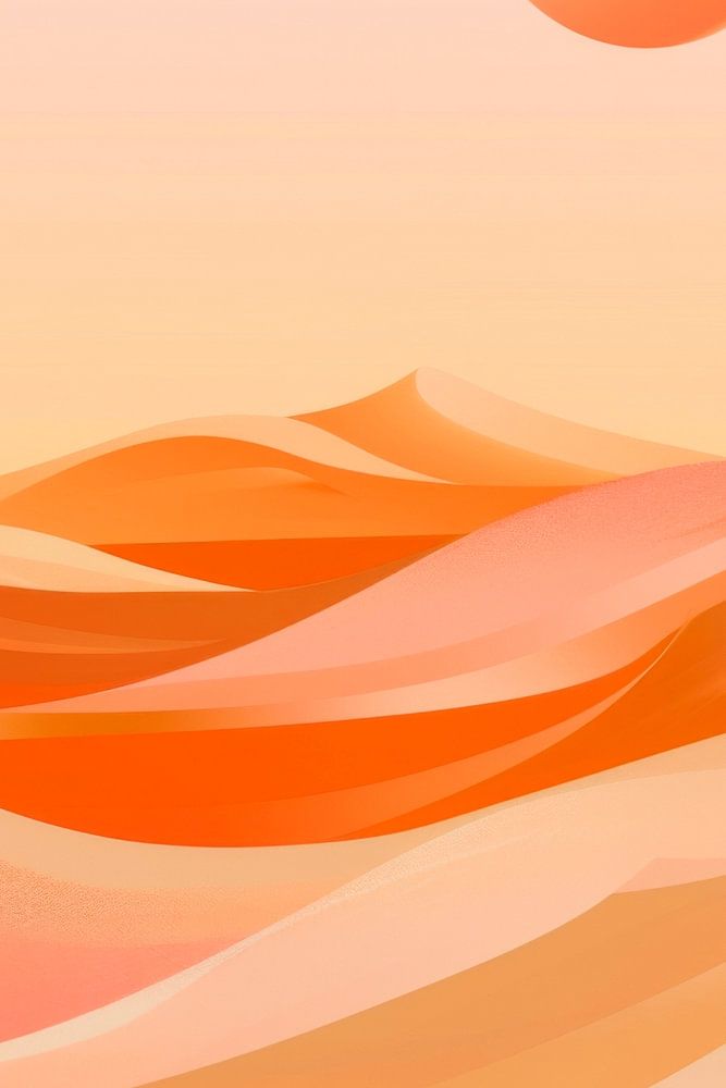An endless dune landscape unfolds in gentle waves of warm red tones and soft beige. The ball of sunlight floats majestically in the sky and bathes the scenery in a touch of magical light. A feeling of vastness and tranquillity surrounds the viewer, while the shapes interlock harmoniously and create a dreamy atmosphere.