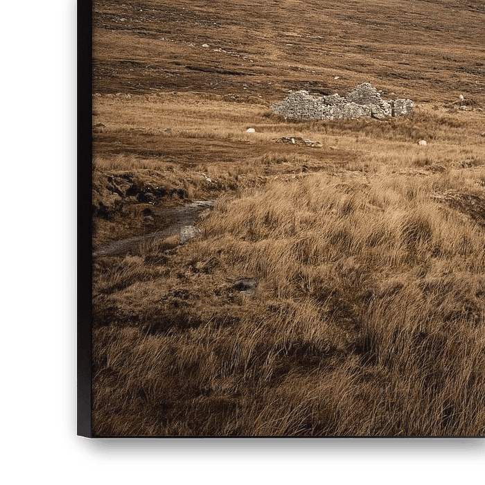 Set at the foot of the south-facing slope of Slievemore mountain, this 'village' consists of the remains of almost 100 traditional stone cottages. They are set either side of an ancient pathway, almost all aligned in the same north-south direction, and they occupy one of the most sheltered areas of Achill Island. The 'village' - literally it is three distinct groups of cottages - extends for a distance of about one mile.