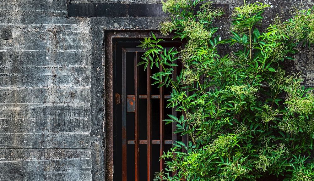 There are still 2 bunkers standing today, owned by the Groninger Landschap. The photo is a detail of the stone staircase with a barred door and next to it and spontaneously growing bush.