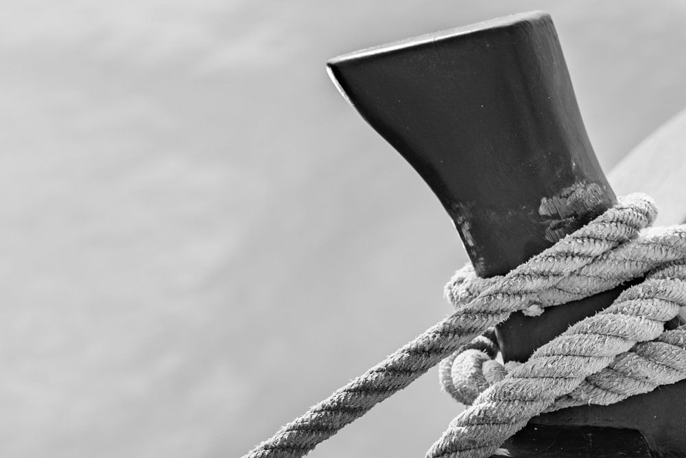 Detail view of rope cleat on boat deck at gray retro style photography by Alex Winter