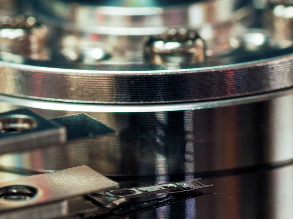 A detail of a hard drive. Even before the advent of the computer was collected all kinds of data . Nowadays, which data is collected on one or more hard disks. And that turn inside to have surprisingly beautiful details ! In this picture you can see a close-up of the rotation and reading system.