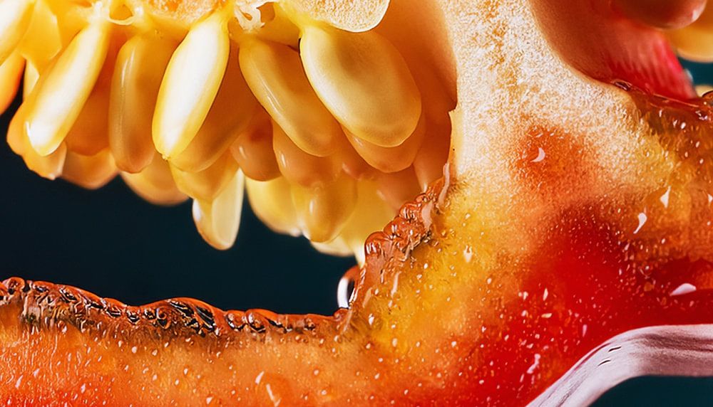 Buy this digital art artwork Detailed close-up of a slice of fresh pepper by Mustafa Kurnaz as a reproduction on canvas, ArtFrame, poster and wallpaper, printed on demand in high quality.