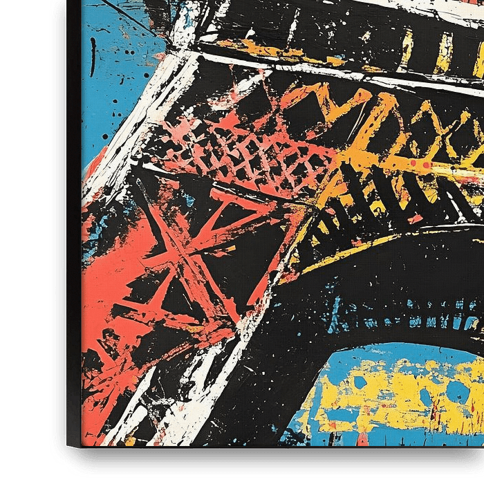 Buy this abstract artwork Detailed view of the Eiffel Tower in Paris in the style of Jean-Michel Basquiat by Felix Wiesner on canvas, ArtFrame, poster and wallpaper, printed on demand in high quality.