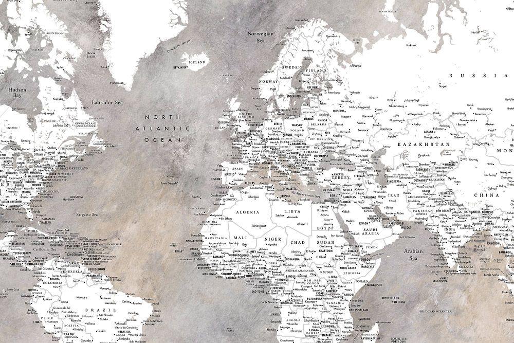 Buy this illustration Detailed world map with cities Vali by Rosana Laiz Blursbyai on canvas, ArtFrame, poster and wallpaper, printed on demand in high quality.