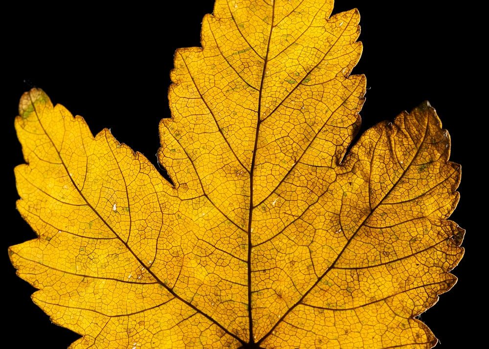 Then to photograph the leaf with a macro lens and with backlighting, making the hubs of this leaf clearly visible.