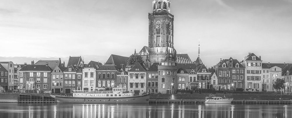 A black and white version of the view of Deventer on a beautiful summer evening in July. With of course the Grote or Lebuïnus church in the leading part.