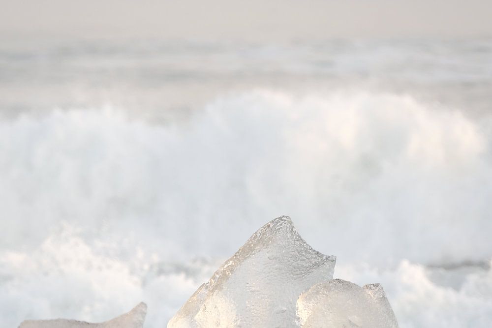 This photo was taken during sunset at Diamond Beach, a river flows from Glacier Lake Jokulsarlon to the sea with huge blocks of Ice regularly being thrown onto the beach by the huge waves.