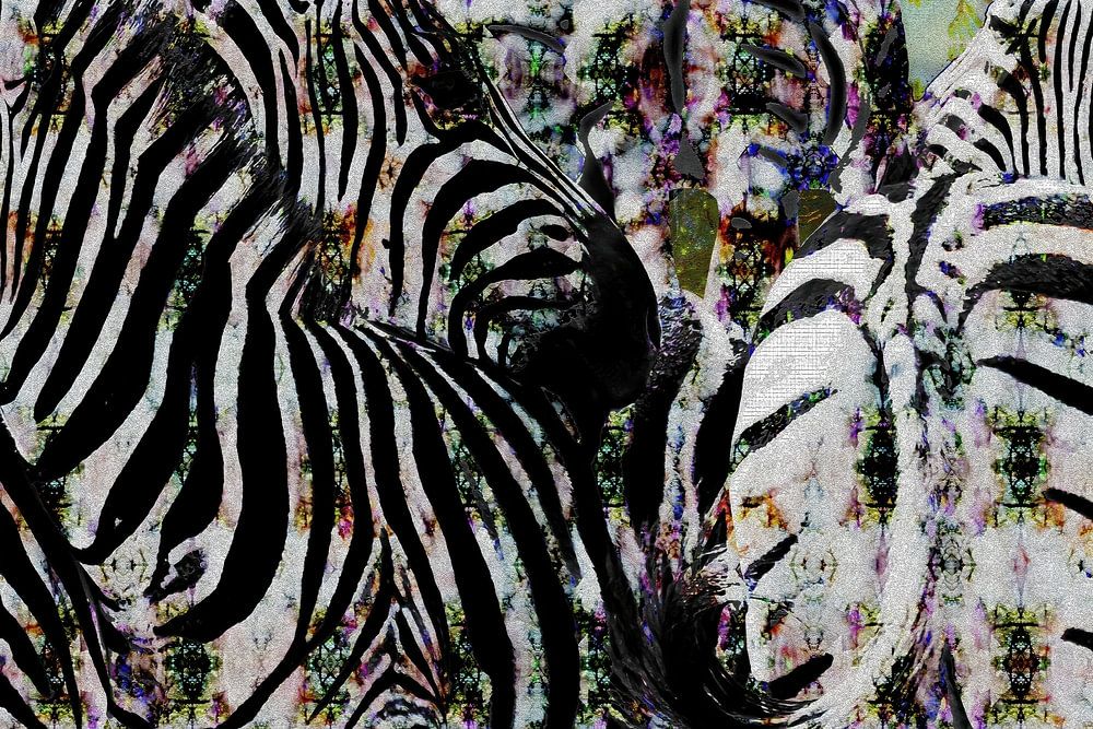 Buy this modern artwork Digital collage with Zebras by Ton Kuijpers on canvas, ArtFrame, poster and wallpaper, printed on demand in high quality.