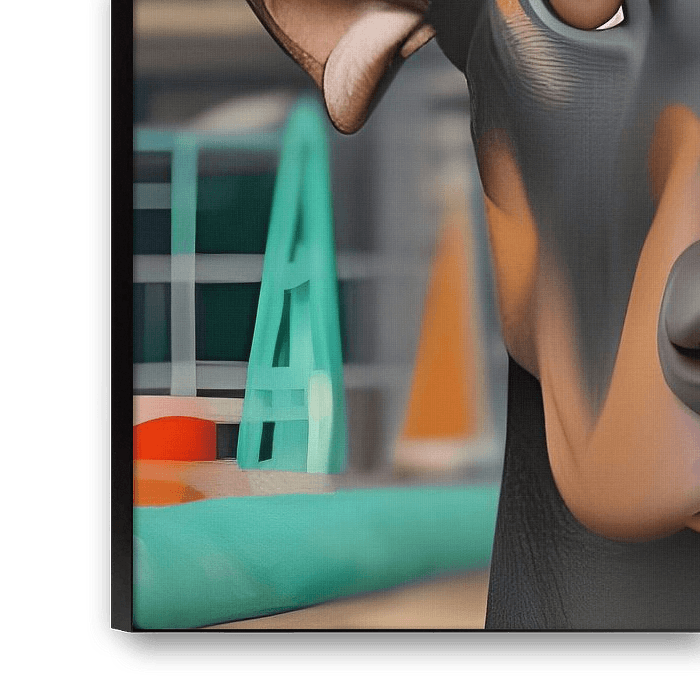 Buy this digital art artwork Doberman as construction worker by Babetts Bildergalerie as a reproduction on canvas, ArtFrame, poster and wallpaper, printed on demand in high quality.
