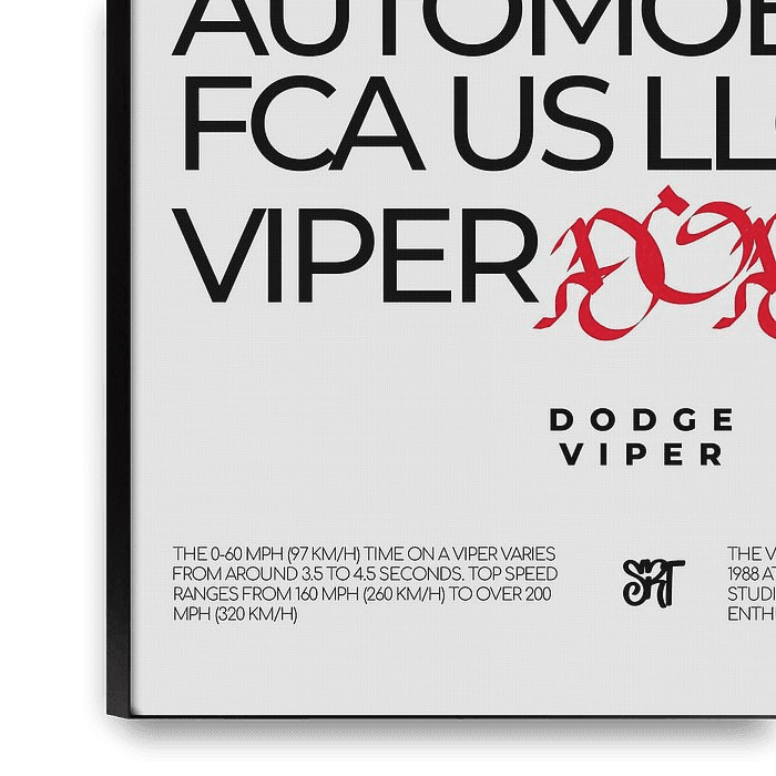 Buy this illustration Dodge Viper SRT by Ali Firdaus on canvas, ArtFrame, poster and wallpaper, printed on demand in high quality.