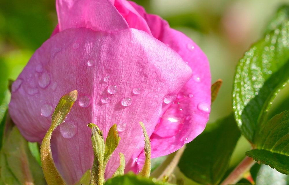 Dog rose with raindrops.