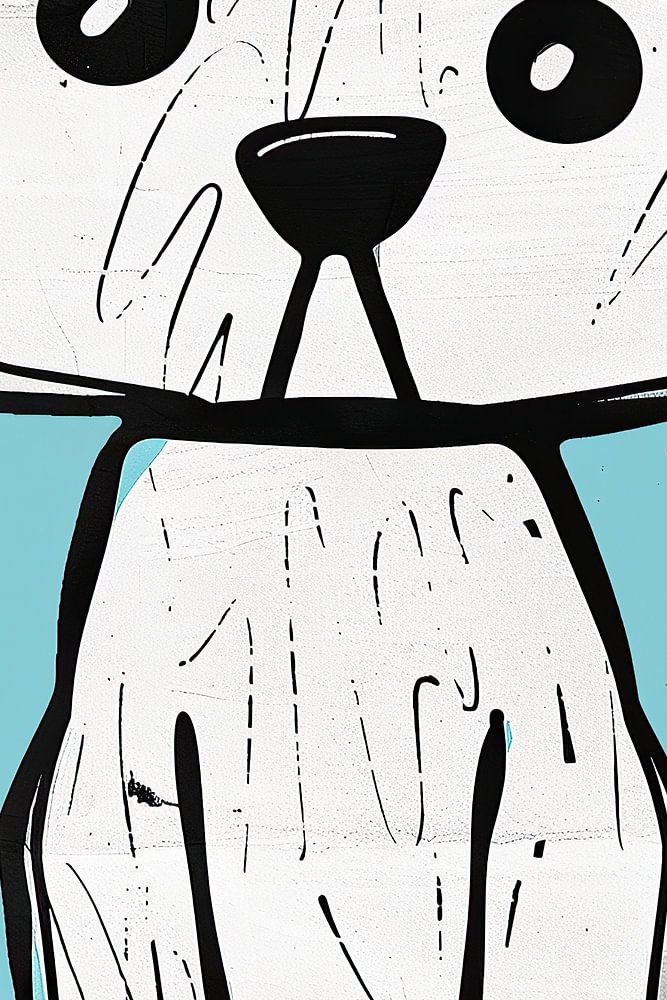 Details: dog, turquoise, illustration, painting, art, playful, stylised, animal, white, black