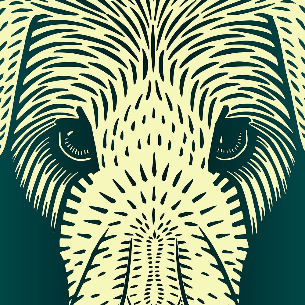 This dog head is originally a woodcut made in 1920 by the Dutch artist Julie de Graag. Using 'image tracing', a computer graphics technique, I converted a print, made publicly available by the Rijksmuseum, into a vector image. I then retouched the vector image and gave it a background color.