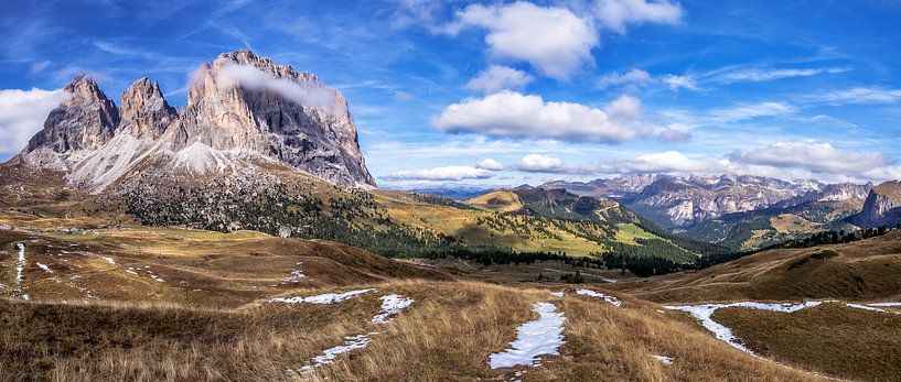 Buy this landscape artwork Dolomites panorama by Achim Thomae Photography on canvas, ArtFrame, poster and wallpaper, printed on demand in high quality.