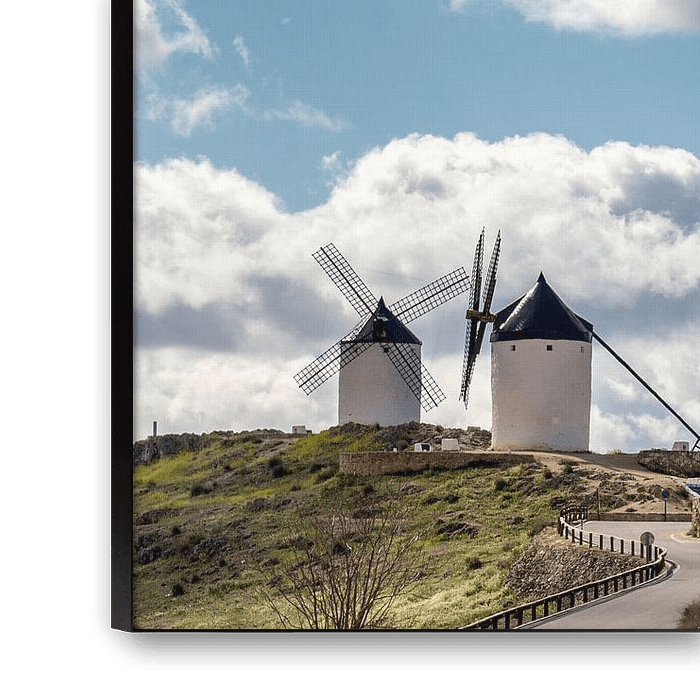 Buy this landscape artwork Don Quixote windmills landscape in Spain. by Carlos Charlez on canvas, ArtFrame, poster and wallpaper, printed on demand in high quality.