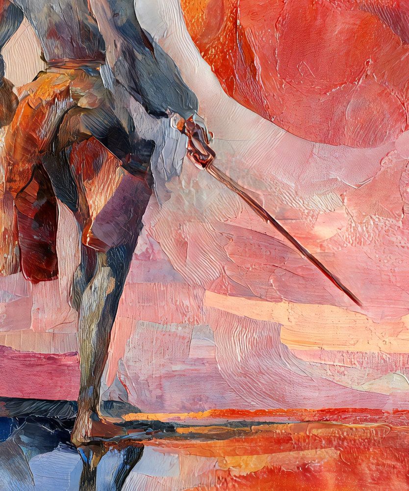 Colourful impressionistic portrait of The Nobleman Don Quixote of La Mancham the travelling troubled idealist.