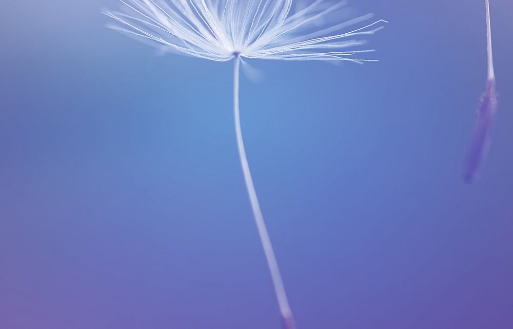 Twodandelion fluffs fluttering down by a light wind. A tender touch,hold me close!